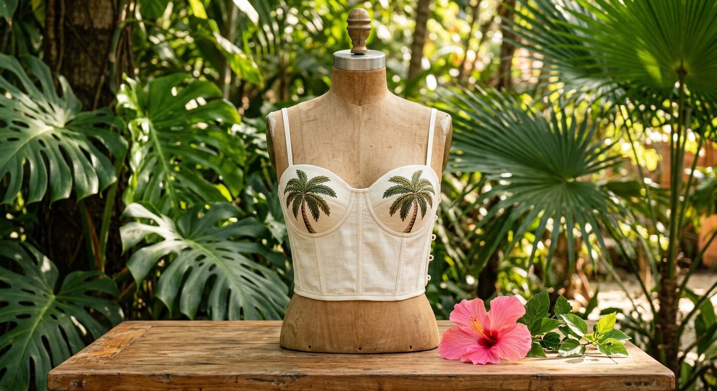 Handcrafted bandeaux and cover-ups with 3D flower details. The warm season, made by hand.